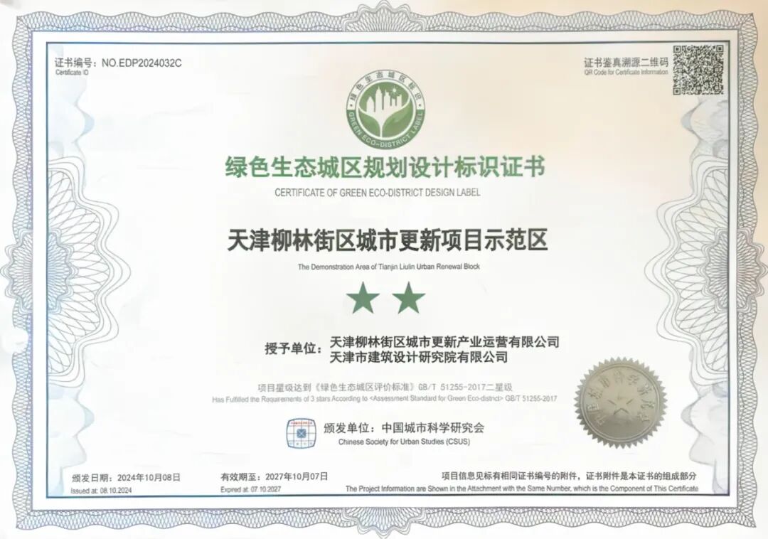 近日,柳林街区城市更新项目示范区正式获得首个城市更新类国家级“绿色生态城区规划设计二星级标识”认证。中国绿色建筑委员会主任王有为带领专家给予认证,不仅标志着天津城市更新建设发展有限公司(以下简称“城更公司”)在助力天津城投集团擦亮“城市更新实施主体”金字招牌的生动实践中开启了绿色智慧城市建设的崭新一页,也对全国城市更新绿色发展新模式起到了重要示范作用。