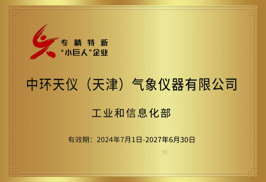 中环天仪(天津)气象仪器有限公司(以下简称“中环天仪气象”)成功通过第六批国家级专精特新“小巨人”企业认定。专精特新“小巨人”企业,是“专精特新”中小企业中的佼佼者,是由工信部官方认定,专注于细分市场、创新能力强、市场占有率高、掌握关键核心技术、质量效益优的排头兵企业,在产业链发挥“补短板”、“锻长板”、“填空白”等重要作用。