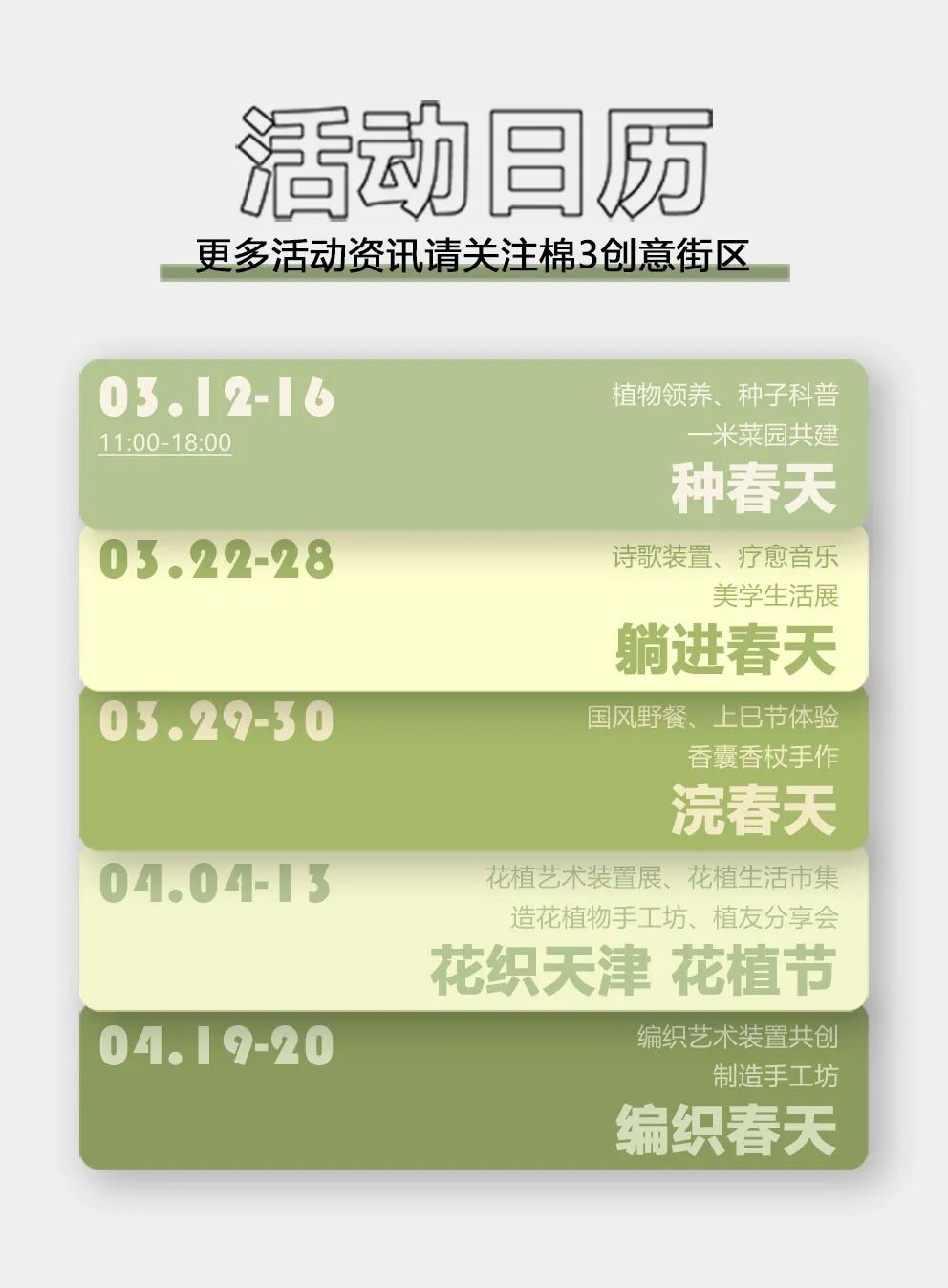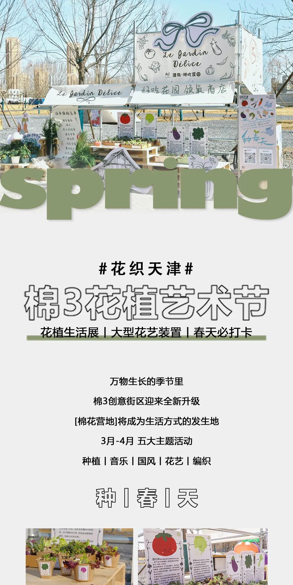 12日起,花织天津“棉3花植艺术季”系列活动正式启动,第一期主题“种春天”相关植物领养、菜园共建、种子科普持续引爆社交媒体。