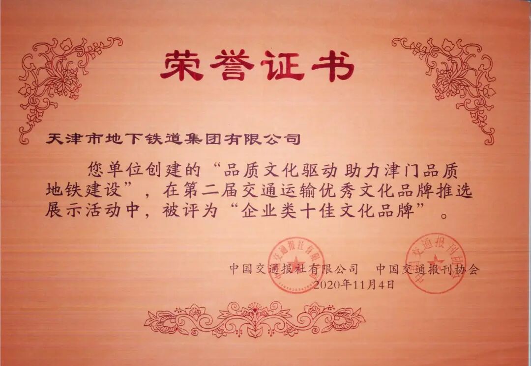 近年来,天津轨道交通集团深耕企业文化建设与品牌创建工作,以“敢为人先、甘于奉献、破除万难、坚持到底”的7047精神为核心,持续锻造“一核两脉双塑造五特色”的企业文化体系,构建起支撑企业“双并重”转型发展的“1225”核心价值理念与文化发展格局,为推动天津轨道交通集团主责主业发展凝聚内部共识、提升外部形象,奠定了较为完备的理论和实践基础,提供了坚实的组织和管理保障。天津轨道交通集团文化品牌建设成果斐然,地铁天津站彩虹岗文化品牌案例《七年染七色,四季迎四方》入选国务院国资委品牌建设典型案例;“快捷无忧 贴心一路”服务品牌荣膺全国交通运输“传播力文化品牌”称号;地铁集团“品质地铁”建设文化品牌斩获“全国交通运输系统十佳文化品牌”;天津轨道交通历史陈列馆在首届全国交通运输优秀文博馆展示活动中,一举摘得“十佳文博馆”与“人气文博馆”双项大奖。