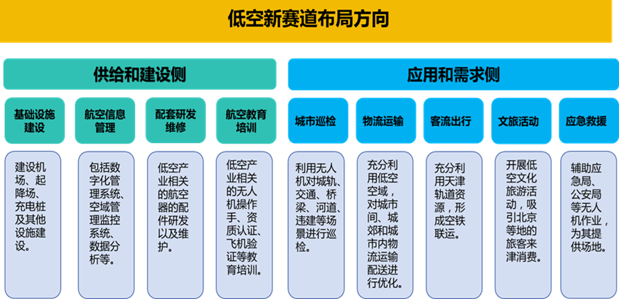 2024年被誉为低空经济元年,轨道集团敏锐把握产业发展机遇,精准定位集团发展低空经济的五大优势,明确把低空经济作为集团新质生产力发展的重要方向。先后赴青岛、广州、深圳等地调研低空经济产业现状、发展模式,与滨海新区、赛迪咨询、航天五院、民航大学、天津市政院低空研究院等政产学研机构深度座谈交流,共同谋划低空经济融合发展路径。2024年底,联合民航大学编制了《轨道集团低空经济发展规划方案》,结合产业发展及轨道集团资源场景优势,明确从供给和建设侧、应用和需求侧两侧发力,开展低空基础设施建设、低空服务保障平台建设、低空场景挖掘、低空关键技术和产业落地4个方向、9大类低空场景规划建设。2025年,推动保护区低空巡检等一批低空场景落地实施,研究形成轨道+低空物流,低空+文旅方案,力争到2030年底,通过三步走战略构建集团低空经济产业生态。场景落地先行