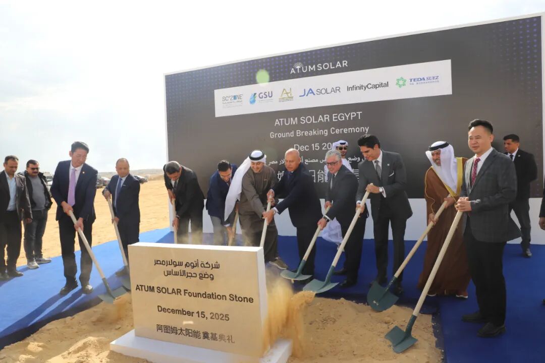 近日,阿图姆太阳能(ATUM Solar)综合产业园奠基仪式在中埃·泰达苏伊士经贸合作区(简称“泰达合作区”)举行,标志着这一覆盖光伏全产业链的绿色制造项目正式启动建设。埃及副总理兼工业与交通部长卡迈勒·瓦齐尔、苏伊士运河经济区管理总局主席瓦利德·贾迈勒丁等埃方高级官员莅临现场,与多家合作企业代表共同见证这一多国能源合作的重要时刻。该项目是泰达合作区深入贯彻新发展理念、推进绿色产业集聚发展的又一标志性成果。深化国际合作,构建绿色能源产业新格局