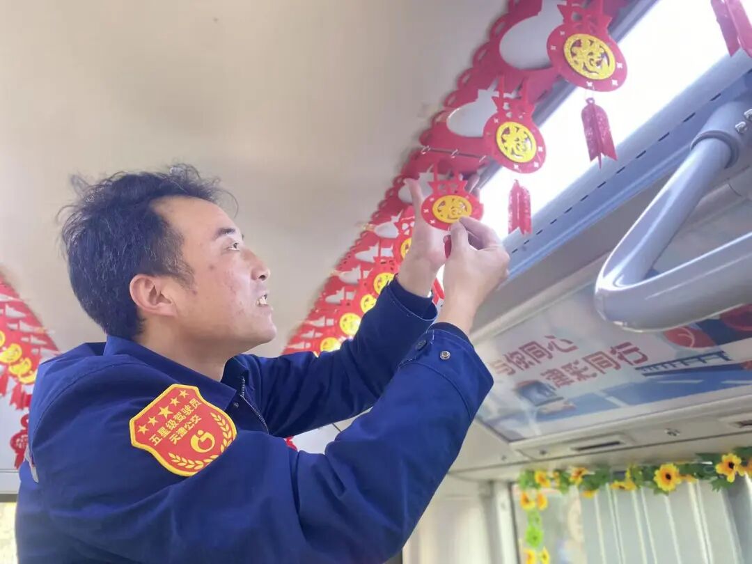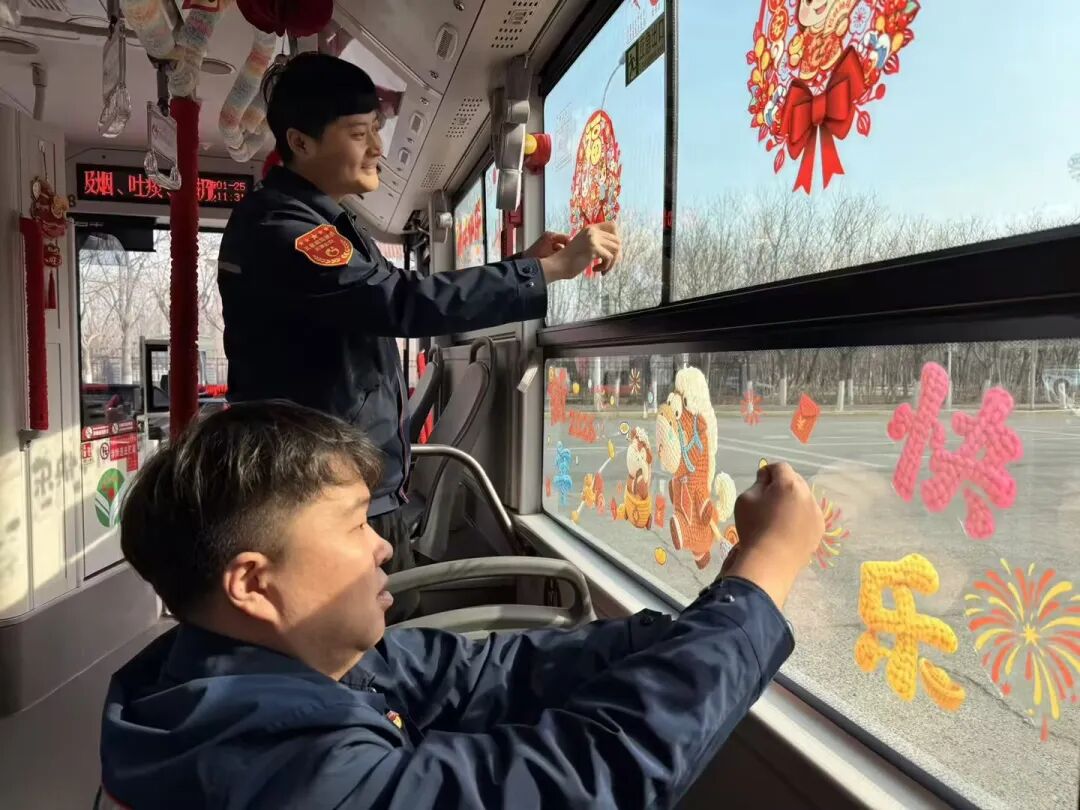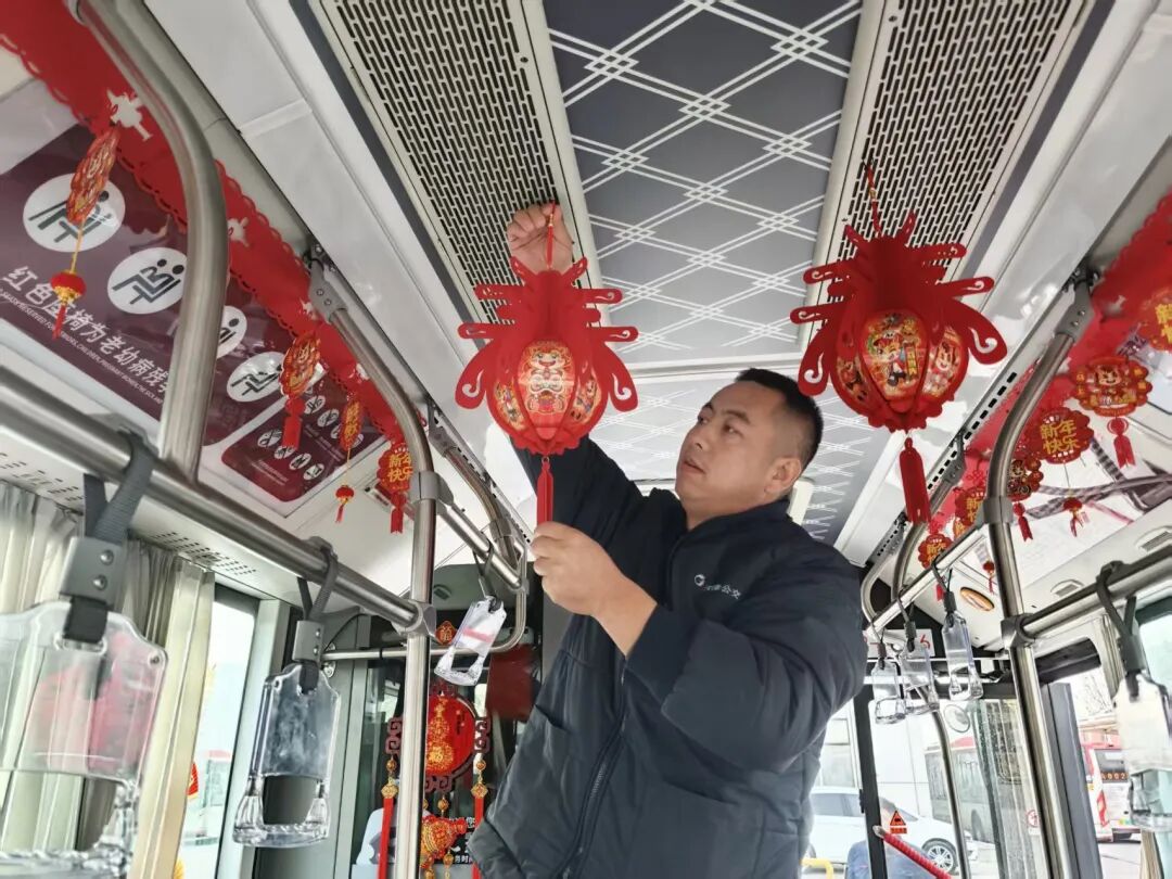 新春将至,第一客运公司五路车队精心装扮年味主题车厢,张贴窗花与新春祝福,全国劳动模范石霞为全车扶手加装红绒布套,既添喜庆又暖心防滑。车队同步优化春运服务,开展应急演练,在重点站点安排志愿者提供行李搬运、线路指引等帮助,用心打造安全舒适、充满年味的乘车环境,让十米车厢暖意融融,全力守护市民春运出行平安顺畅。