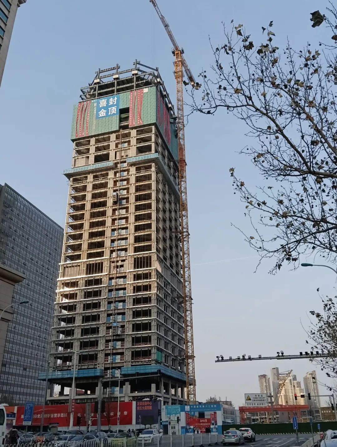 1月22日上午,随着34层最后一层钢构件安装完毕,由天津食品集团有限公司(以下简称“集团”)所属天津立达置业发展有限公司(以下简称“立达置业公司”)投资建设的友谊金融中心项目实现钢结构主体封顶,标志着项目全面进入二次结构和装饰装修阶段。集团党委书记、董事长万守朋,中建八局华北公司党委书记、董事长于健参加封顶仪式。