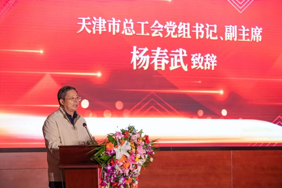 天津市总工会党组书记、副主席杨春武致辞,并向受到表彰的最美奋斗者表示热烈的祝贺。他表示,天津作为中国内地第二个拥有地铁的城市,从7047工程开始逐梦,如今形成覆盖市内十二个区,连接天津机场、天津站、天津西站等交通枢纽,“安全、便捷、绿色、智慧、人文”的城市轨道交通网络。四十年来,天津轨道交通集团广大干部职工传承发扬7047精神,涌现出一批劳动模范、技术能手和能工巧匠,用匠心和汗水让天津市民的生活圈在轨道联通中紧密相连,一抹抹无畏风雨的“轨道蓝”成为了城市风景靓丽底色。希望新时代轨道交通奋斗者,胸怀“国之大者”,以岗位为舞台,乐于无私奉献,不断练就过硬本领,在推动高质量发展“十项行动”中再显强担当。