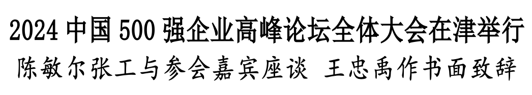 王忠禹在致辞中说,进入新时代以来,以中国企业500强为代表的大企业为我国综合国力和竞争力的提高作出了重要贡献。党的二十大擘画了全面建成社会主义现代化强国的宏伟蓝图,党的二十届三中全会作出了进一步全面深化改革、推进中国式现代化的重大战略部署。希望我国企业坚持以习近平新时代中国特色社会主义思想为指导,认真贯彻落实党的二十大及二十届三中全会精神,胸怀“两个大局”,聚焦高质量发展,大力弘扬企业家精神,加快建设世界一流企业,在中国式现代化进程中发挥更大作用,为以中国式现代化全面推进中华民族伟大复兴作出更大贡献。