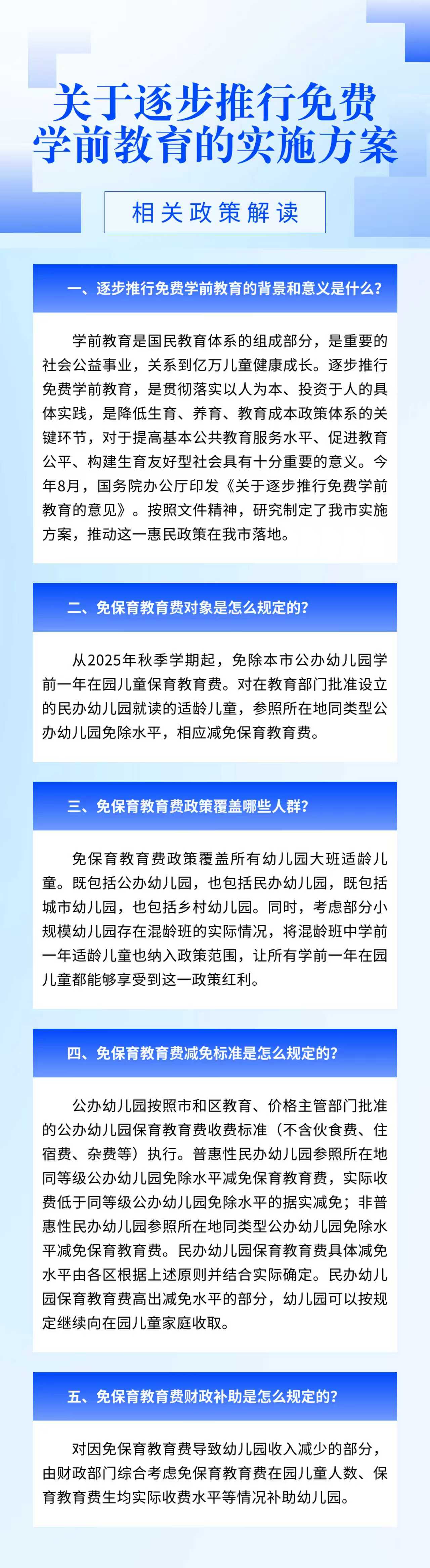 一图读懂《关于逐步推行免费学前教育的实施方案》政策解读