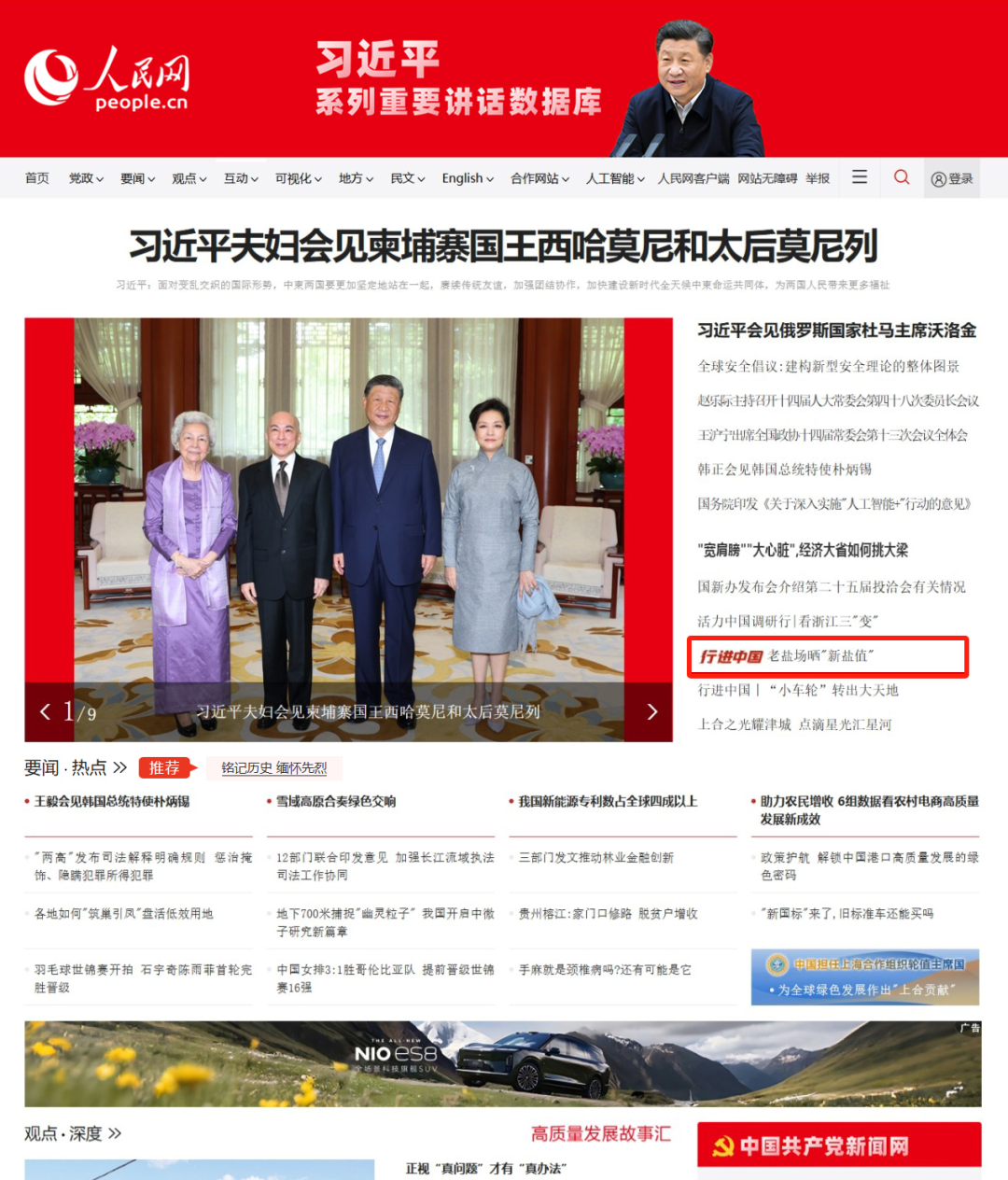 编者按:8月26日,人民网首页首屏刊发《老盐场晒“新盐值”》,报道天津渤化集团汉沽盐场千年传承与创新发展成果,并获全平台联动推送,中国驻沙特大使馆公众号、今日头条、搜狐、腾讯、新浪、一点资讯等主流平台陆续转载推介。行进中国丨老盐场晒“新盐值”