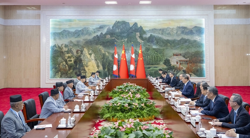 8月30日下午,国家主席习近平在天津迎宾馆会见来华出席2025年上海合作组织峰会和纪念中国人民抗日战争暨世界反法西斯战争胜利80周年活动的尼泊尔总理奥利。新华社记者 黄敬文 摄