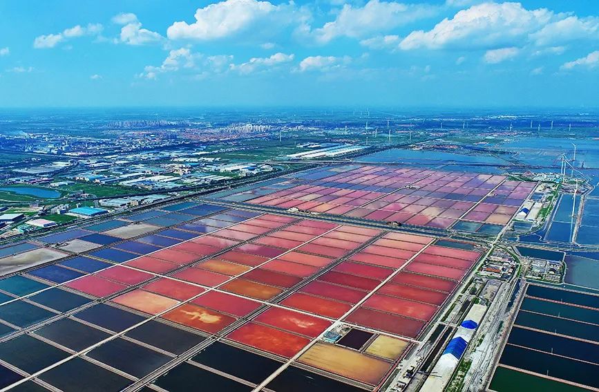 2024年,“天津长芦海盐文化旅游区”获评国家4A级旅游景区,迈出了中国传统海盐立足原有场区、探索产业升级新步伐。这里将延用数百年的滩晒盐田,按照新发展理念,结合生态建设,改造为集文化、生态、研学为一体的工业景区,成为传承天津盐业文化的新载体:游客徒步攀登雪白的盐山,踩万余平米的洁白盐池,参观涵盖5个功能厅的“知盐学堂”,体验现代科技裸眼9D,穿越千年盐业史。五年间,这里接待游客100余万人次,“七彩盐田”成为京津冀网红打卡地,还拿下全国海洋科普教育基地等荣誉,汉沽古盐田更是被列入国家工业遗产。不远处的直播间里,“汉盐海泽”牌盐田虾、海参轮番登场。这些“津农精品”蛋白质、氨基酸含量高,通过镜头销往全国各地。与荷兰一家集团合资的仓储公司,更让汉沽盐场成了京津冀地区具备影响力的液体化工品储运企业——“以盐为基础,多元发展”的战略,在此落地生根。2023年,汉沽盐场入选国务院国资委“双百企业”,这不仅是荣誉,更是鞭策。如今,它正在新发展理念下,探索体制机制创新,推进六大攻坚战,全力转型升级。“七彩盐田”美如画。汉沽盐场 彭小卫摄