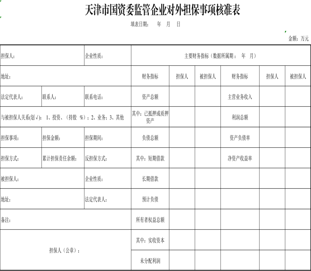 (六)《天津市国资委监管企业对外担保事项核准表》;