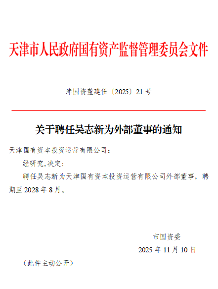 关于聘任吴志新为外部董事的通知